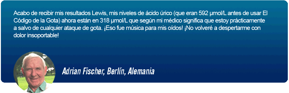 Y 7 días más tarde, para mi asombro mi gota no sólo había desaparecido completamente, sino que también me sentía extrañamente rejuvenecido y enérgico, más de lo que me había sentido en mucho tiempo.